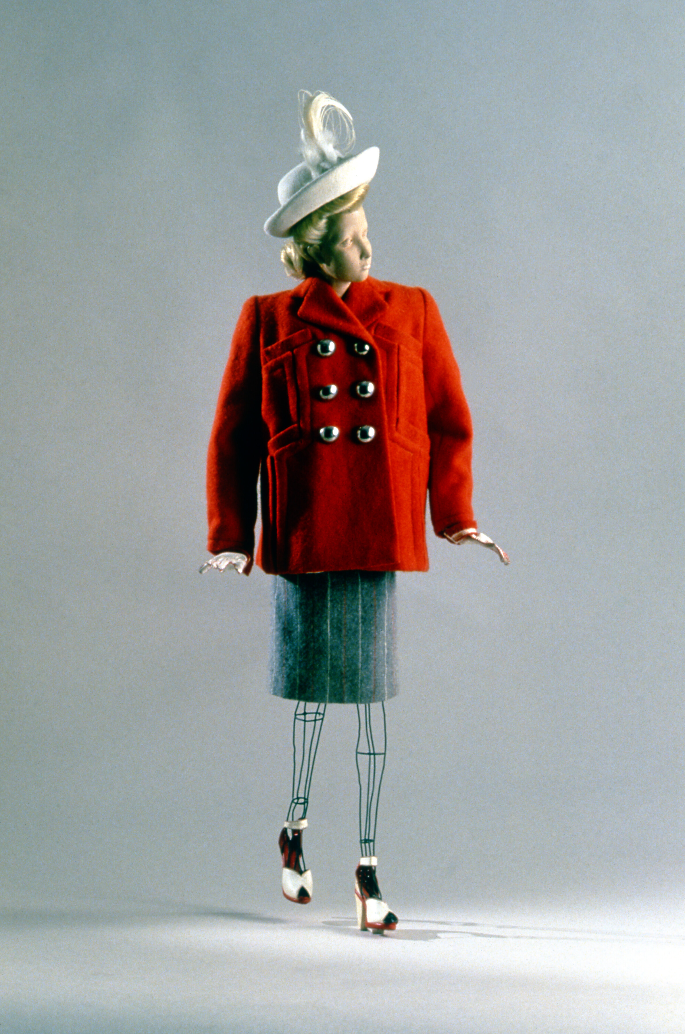 At the end of August 1944, Paris was liberated after four years of German occupation. The economy was in ruins, but signs of post-war life were slowly emerging. For example, La Chambre syndicale de la Haute Couture Parisienne, the professional association of the French fashion industry, took the initiative for the Théâtre de la Mode: an exhibition with 237 miniature dolls, dressed in day and evening wear by Parisian couture houses. It opened on 27 March 1945 at the Pavillon de Marsan in the heart of Paris and attracted nearly 100,000 visitors. The dolls, figurines standing at 70 cm, were designed by Eliane Bonadel: “We immediately thought these dolls should not be too solid as this would be reminiscent of a toy. I thought of something transparent… my point of departure was the table of measurements found in fashion magazines at the time.” This is apparent from the limbs, made from wire and reminiscent of schematic drawings of the (female) body.