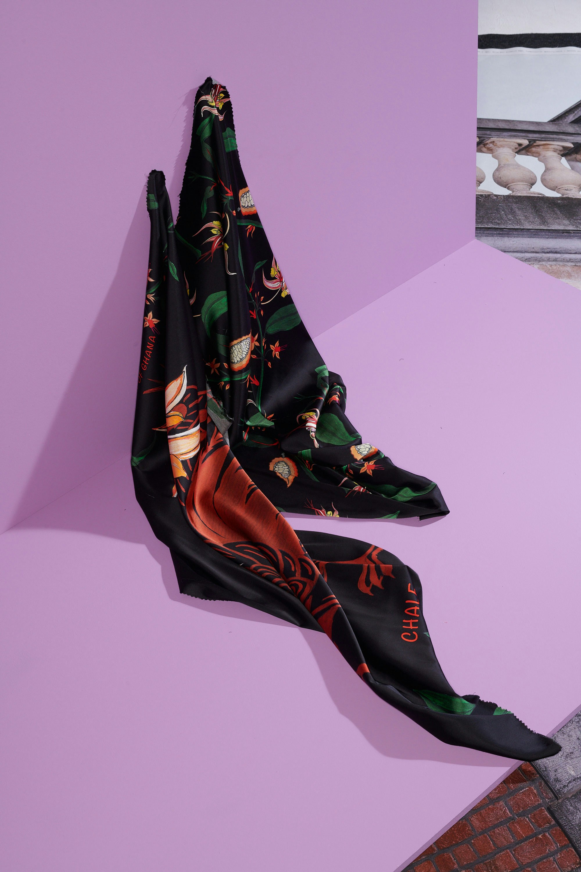 Uit een mix van viscose en satijn creëerden Antwerps modelabel YNGR, regisseur Anthony Nti en tweedehands designshop Labels Inc. deze unisex shirt en broek met Ghanese print. Anthony’s Ghanese roots vormden de inspiratie voor de botanische tekeningen van cacao en de Sankofa vogel, een Ghanees symbool voor de levenslessen van het verleden.